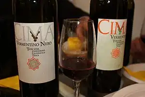 Vermentino nero is a red Italian wine grape variety that is predominantly grown in province of Massa-Carrara in Tuscany. After World War II, the vine was almost lost to extinction until Podere Scurtarola, a producer from Massa, began replanting old vineyards with the grape. By 2000, there were 199 hectares (492 acres) of Vermentino nero growing in Italy with the grape authorized for production in the Denominazione di origine controllata (DOC) wines of Candia dei Colli Apuani and Colline Lucchesi.[1]