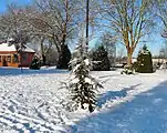 The park has a bandstand, a maze, a pond, a playground and a bowling green.[5] The gardens include water features, a fernery, a sunken garden and herbaceous borders.[6] The landscape includes tree-lined paths, statues and a cannon. The open views allow sight of the nearby mills.[5]