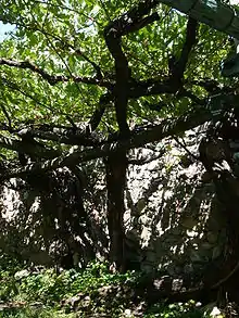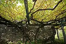 While ampelographer doubt the details of that origin story, today the Katzenzungen Versoaln vine is considered to be one of the oldest and largest vines in the world. Dated by Martin Worbes of the University of Göttingen in Germany to be at least 350 years old, the vine has been measured to cover a length of 350 square metres (3,800 sq ft).[1] Among the few grapevines in the world that are older than the Katzenzungen vine is the 400+ year old Žametovka vine growing in the Slovenian town of Maribor.[2][3]