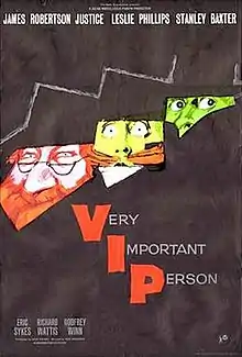 Very Important Person (retitled A Coming Out Party in the United States) is a 1961 British comedy film directed by Ken Annakin and written by Jack Davies and Henry Blyth. The cast includes several well-known British comedy and character actors, including James Robertson Justice, Stanley Baxter in a dual role as a dour Scottish prisoner and a German prisoner-of-war camp officer, Eric Sykes, John Le Mesurier, Leslie Phillips and Richard Wattis.
