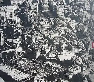 The Roman Forum and the Alessandrino district before the demolitions (between 1924 and 1932): the Ghettarello above the Forum of Caesar has already been demolished, while the other buildings are still intact.