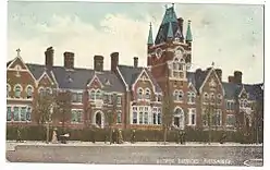 The first unit to arrive was the 1st Battalion, the South Lancashire Regiment (who were transferred there gradually, as the buildings were completed, from the old Clarence Barracks which lay within the lines).[2] The plans for the officers' quarters (dated 1885) suggest that it was intended to transfer the name Clarence Barracks to the new buildings, but in the event the name Victoria Barracks was used.[1] (Clarence became the designation of a new Artillery barracks, begun in 1890; these were built alongside Victoria Barracks to the west, in place of the old barracks and over the now-demolished fortifications). Between the new Clarence and Victoria Barracks a large parade ground was laid out.[1]