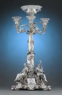 Victoria Bridge Silver Epergne gifted to builder William York, Esq. Hallmarked London, 1854