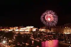 ![]() Fireworks above Fort St. Angelo on Victory Day 2016, reminiscent of the bombings in World War II | |