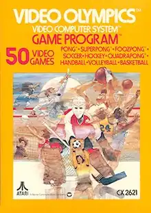 Video Olympics is a video game programmed by Joe Decuir for the Atari 2600. It is one of the nine 2600 launch titles Atari, Inc. published when the 2600 system was released in September 1977. The cartridge is a collection of games from Atari's popular arcade Pong series. A similar collection in arcade machine form called Tournament Table was published by Atari in 1978.[2]