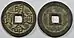 The inscriptions of Vietnamese cash coins can be written in either the Viết chéo (曰湥 / 曰袑, top-bottom-right-left) style or the Viết thuận (曰順, clockwise, top-right-bottom-left) style.[10]
