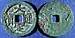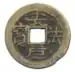 However, in 1871 the production of zinc cash coins stopped as many mines were being blocked by Chinese pirates and the continued production of these coins would be too expensive.[49] Other reasons for the discontinuation of zinc cash coins despite them being indispensable to the general populace were because they were heavy compared to their nominal value and the metal was quite brittle.[49] Following the establishment of the French colony of Cochinchina the chaotic monetary situation of Đại Nam severely worsened as Qing Chinese merchants quickly took advantage of it and started producing poor quality cash coins to bring to the colony where no regulations against their activities existed.[51] The Tự Đức Emperor tried to search Qing merchant ships, make outposts block their entry, and ban Qing Chinese merchants from bringing in too much money.[51] Though by 1879 the Nguyễn court was forced to accept the copper-alloy Hành dị dạng tiền (deformed money) at a value of 3 zinc cash coins, provided that the cash coin in question was quite similar in quality to the indigenous Vietnamese currency.[51]