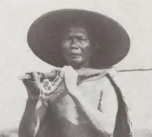 A rural man carrying a string of cash coins (1919).