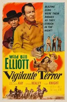 Vigilante Terror is a 1953 American Western film directed by Lewis D. Collins and written by Sidney Theil. The film stars Wild Bill Elliott, Mary Ellen Kay, Robert Bray, I. Stanford Jolley, Henry Rowland and Myron Healey. The film was released on November 15, 1953, by Allied Artists Pictures.[1][2][3]