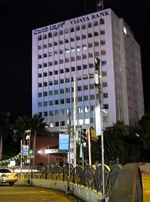 Vijaya Bank[2][3][4] was a PSU bank which was merged with Bank of Baroda on 1 April 2019 with its head office in Bangalore, Karnataka, India. It was one of the nationalised banks in India. The bank offered a wide range of financial products and services to customers through its various delivery channels. As of March 2017, the bank had a network of 2031 branches throughout the country and over 4,000 customer touch points including 2001 ATMs.[5][6]