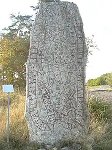 He has been compared to the man by the same name on runestone Sö 54 in Bjudby, Södermanland, Sweden. It also mentions a prominent family, and besides the father Víkingr it names three sons with the same names. Moreover, there are also close correspondences with the other names.[1]