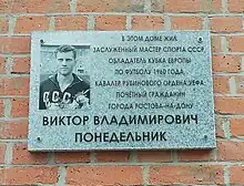 Viktor Vladimirovich Ponedelnik (Russian: Виктор Владимирович Понедельник, 22 May 1937[1] – 5 December 2020) was a Russian footballer and manager, who played for the Soviet Union national team.