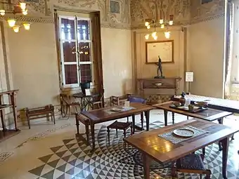 Reinach commissioned exact copies of ancient Grecian chairs, tabourets and klismos furniture kept in the National Archaeological Museum in Naples from the cabinetmaker Bettenfeld. Other decorations were to original designs by Pontremoli.[3]