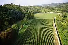 The Villa Mosconi Bertani (also known as Villa Novare) is a Neoclassical winery and manor in the Veneto region of Italy famous for its heritage in the production of Amarone della Valpolicella wine. It is located in the municipality of Negrar di Valpolicella, Località Novare, in the province of Verona. It is the only Veronese estate since the beginning of the 18th century specifically constructed for the purpose of wine production. It consists of a residence, large cellar and orchard (22 hectares (54 acres)). Villa Mosconi Bertani is also known to have been an important centre of Romanticism, through Italian poet and writer Ippolito Pindemonte, and also the cradle of Amarone wine. The complex is listed and protected as a historical landmark by the Ministry of Cultural Heritage and Activities. The villa, park and winery are open to the public for guided tours, cultural events and private parties. The villa now is the main winery for Tenuta Santa Maria, owned by the Bertani family.