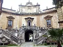 The Villa Palagonia is a patrician villa in Bagheria, 15 km from Palermo, in Sicily, southern Italy. The villa itself, built from 1715 by the architect Tommaso Napoli with the help of Agatino Daidone, is one of the earliest examples of Sicilian Baroque. However, its popularity comes mainly from the statues of monsters with human faces that decorate its garden and its wall, and earned it the nickname of "The Villa of Monsters" (Villa dei Mostri).