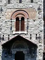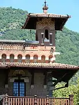 The building features an eclectic style that combines Gothic Revival and Art Nouveau elements. Light stone, bricks and wood are used in the façades in the decoration. A large tower with biforas crowned by a loggia characterizes the façade overlooking the lake.[1][2]