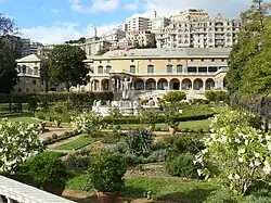 The Northern part of the park used to be landscaped with monumental stairs, nymphaea and a colossal statue of Jupiter resembling Andrea Doria, made by Marcello Sparzo and known as "the Giant". This part of the park is not lost: cut off from the villa by the construction of the railway and the Genova Piazza Principe train station, it became a residential area. In 1913, the architect Gino Coppedè built the art nouveau Albergo Miramare next to the colossal statue of the Giant, which was eventually demolished in 1929.[4]