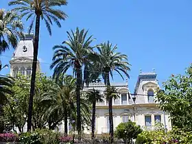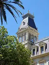 The villa, which features an eclectic style, has a mansard roof.[1]