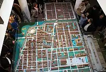 - Principium of the Roman castrum (at least 50 by 70 m (160 by 230 ft) in total) along with a number of Roman coins and other artifacts was found in November 2020.[27] The Principium was the main headquarters of the Legio VII Claudia. The massive object, which covers 3,500 m2 (38,000 sq ft) and has 40 rooms, hosted offices, armories, shrine, vault, basilica, and room for keeping military flags and insignia. Central section is an inner yard with peristyle. Water storage and fountain are also within the complex, which is from all sides surrounded by the colonnades. Strong walls point to the existence of upper floors. Interior remains show paving of the floor with decorative tiles (glass hour or butterfly ornaments), while the walls were decorated with red and white patterns, floral motifs, inscriptions and bordures. In the vault the denarius and antoninianus coins were found, mostly depicting the 3rd century emperors Gallienus, Claudius Gothicus and Aurelian.[26]