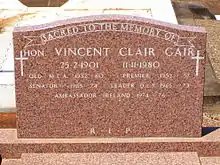 - ↑ Stevenson, Brian (2010). "GAIR, Vincent Clare (1901–1980)". The Biographical Dictionary of the Australian Senate. Retrieved 31 December 2022.