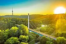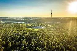 Vingis Park (Lithuanian: Vingio parkas) is the largest park in Vilnius, Lithuania, covering 162 hectares (400 acres). It is located in Vilkpėdė eldership near a curve of the Neris River, hence its Lithuanian name "vingis" which means "bend" or "curve". A pedestrian bridge connects the park with Žvėrynas. It is used as a venue for various events, especially concerts and sports competitions. It contains a stadium, an amphitheater and a department of the Botanical Garden of Vilnius University.