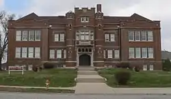 Vinton School was built as a fourteen-room elementary school in 1908 at 2120 Deer Park Boulevard in the Deer Park neighborhood of Omaha, Nebraska, United States. Designed by Omaha architect Frederick W. Clarke, Vinton School is the earliest and most elaborate example of a Tudor Revival-style school in Omaha.[3] Designated an Omaha Landmark in June 1990, the building was listed on the National Register of Historic Places in November 1989.[4]