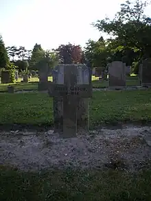 It has been thought that Gibson was insane at the time of the attack and the idea of assassinating Mussolini was hers and that she worked alone. She told interrogators that she shot Mussolini "to glorify God" who had kindly sent an angel to keep her arm steady.[6] She was deported to Britain after being released without charge at the request of Mussolini, an act for which he received the thanks of the British government.[10][9] The assassination attempt triggered a wave of popular support for Mussolini, resulting in the passage of pro-Fascist legislation which helped consolidate his control of Italy.[6] She spent the rest of her life in a psychiatric hospital, St Andrew's Hospital in Northampton, despite repeated pleas for her release.[11][12] She died on 2 May 1956 and was buried in Kingsthorpe Cemetery, Northampton.[1][13]