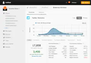 Viralheat was a social media management tool with features for account management, monitoring, analytics[1] and publishing.[2] It tracks the number of mentions an individual or company receives on digital properties and analyzes factors such as influence, sentiment and language.[3] The influence of a Twitter handle is measured based on followers, mentions, and retweets[4] Sentiment is assessed as positive, negative or neutral.[5] Viralheat's Human Intent tool labels social media participants as leads if it assesses that they are likely to consider purchasing a corresponding product.[6] The software's analytics and monitoring can be filtered by location.[4] Data from Viralheat can be exported into PDF files, Excel spreadsheets or onto a publicly available dashboard.[3]