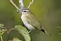 The genus Vireo was introduced in 1808 by the French ornithologist Louis Pierre Vieillot.[4] The type species was subsequently designated as the white-eyed vireo (Vireo griseus) by German ornithologist Hans Friedrich Gadow in 1883.[5][6] The word vireo was used by Latin authors for a small, green, migratory bird, probably a Eurasian golden oriole, but a European greenfinch has also been suggested.[7]