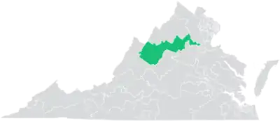 The district overlaps with Virginia's 5th, 6th and 7th congressional districts, and with the 18th, 20th, 24th, 25th, 26th, 30th, and 58th districts of the Virginia House of Delegates.[4] Its western edge borders the state of West Virginia.[1]