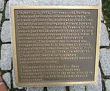 - ↑ "Remembering Barbara Johns". Hampden Sydney College News & Events. Hampden Sydney College. Archived from the original on August 27, 2007. Retrieved March 13, 2007.