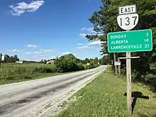 SR 137 begins at an intersection with SR 40 (Broad Street) in the town of Kenbridge. This intersection is also the northern terminus of SR 138, which runs concurrently with SR 137 southeast along 5th Avenue. The two highways exit the town as Dundas Road, which curves to the south and crosses over an abandoned railroad grade. At Lafoons Corner, SR 138 continues south as South Hill Road toward South Hill while SR 137 turns east to remain on Dundas Road. The state highway crosses over the former rail line again, then turns right at SR 645 (Jonesboro Road) to remain on Dundas Road, which parallels the abandoned rail line to the hamlet of Dundas. SR 137 turns south at the northern segment of SR 603 (Potts Spring Road), intersects the former rail line, and turns east again at the southern segment of SR 603 (Mill Pond Road). East of Dundas, the state highway crosses the LunenburgBrunswick county line. SR 137 continues on Danieltown Road to its eastern terminus at SR 46 (Christanna Highway) at the hamlet of Danieltown.[1][2]