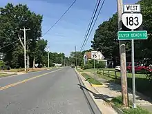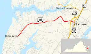 State Route 183 is a primary state highway in the U.S. state of Virginia. Known as Occohannock Neck Road, the state highway runs 7.45 miles (11.99 km) from SR 613 and SR 709 in Jamesville east to U.S. Route 13 Business (US 13 Business) in Exmore in northern Northampton County.