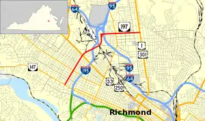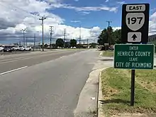 State Route 197 (SR 197) is a primary state highway in the U.S. state of Virginia. The state highway runs 3.60 miles (5.79 km) from SR 147 in Richmond east to U.S. Route 1 (US 1) and US 301 in Richmond.