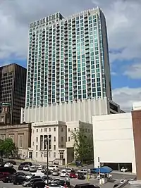 The Viridian Tower is a 378-foot (115 m), 31 story skyscraper in Nashville, Tennessee. The building's features include an H.G. Hill grocery store on the bottom floor, rooftop pool, fitness center and clubroom, and secure key card access. In 2007, the building received Project of the Year Award by Urban Land Institute. It is currently the thirteenth tallest building in Nashville.