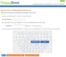 Virtual keyboards may be used in some cases to reduce the risk of keystroke logging.[47] For example, Westpac's online banking service uses a virtual keyboard for password entry, as does TreasuryDirect (see picture). It is more difficult for malware to monitor the display and mouse to obtain the data entered via the virtual keyboard than it is to monitor real keystrokes. However, it is possible, for example by recording screenshots at regular intervals or upon each mouse click.[48][49]