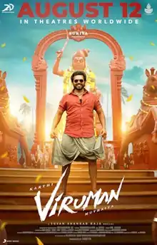 Viruman is a 2022 Indian Tamil-language action drama film[2] written and directed by M. Muthaiah. Produced by Suriya under 2D Entertainment, the film stars Karthi and debutante Aditi Shankar.[3] Yuvan Shankar Raja composed the music with cinematography by Selvakumar S. K.[4][5] It was released theatrically on 12 August 2022 and emerged as a commercial success at the box office.[6][7]