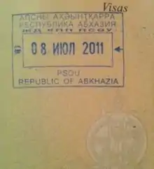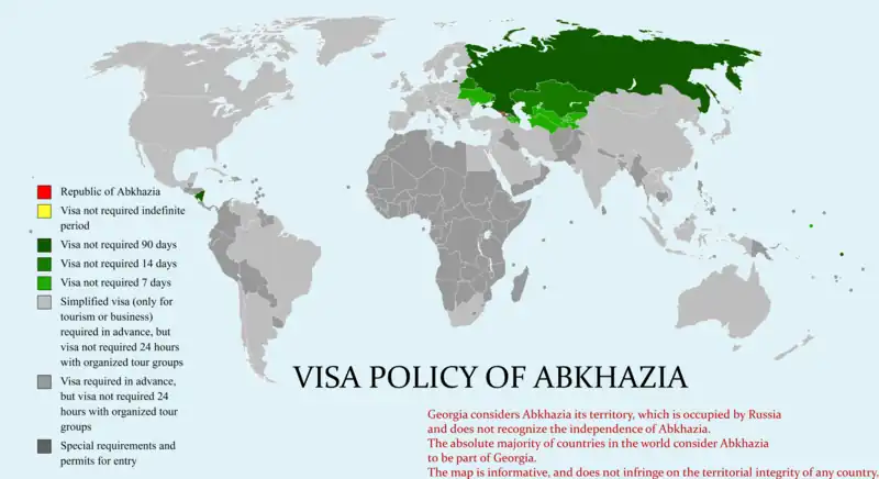 - ↑ Decree of the President of Abkhazia. On the establishment of visa-free entry to the Republic of Abkhazia of certain categories of foreign citizens (in Russian)