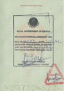 - ↑ "Visa to Bhutan". Druk Asia. Druk Asia / Tourism Council of Bhutan. Retrieved 23 September 2022.