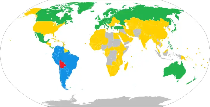 - 1 2 3 "LISTA DE PAÍSES". www.migracion.gob.bo (in Spanish). Dirección General de Migración. Retrieved 5 January 2023.