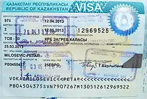 - ↑ "Visa regime of the Republic of Kazakhstan for foreign citizens".