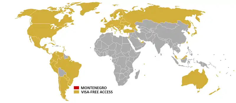 Citizens and holders of ordinary passports of the following countries and territories can enter Montenegro without a visa up to 90 days within any 180-day period (unless otherwise noted):[1]