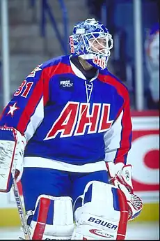 | 2000–01 | Hartford Wolf Pack | AHL | 36 | 16 | 15 | 3 | — | 1977 | 98 | 2 | 2.97 | .903 | — | — | — | — | — | — | — | — | ||