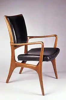 His Midcentury modern furniture with "Sinuous wooden frame characteristics"[1] has a modern feel. His style, inspired by everything from antiques and nature to the Bauhaus, emphasizes comfort and functionality.