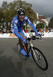 Vladimir Alexandrovich Karpets (Russian: Владимир Александрович Карпец) (born 20 September 1980 in Leningrad) is a Russian road bicycle racer, who last rode for UCI ProTeam Movistar Team.[1] Karpets is most notable for winning the white jersey for best young rider in the 2004 Tour de France[2] and his victories in the overall classifications of the Volta a Catalunya and the Tour de Suisse, both in 2007. Karpets is also a two-time Olympian.