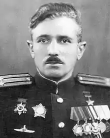 He was awarded the honorary title of Hero of the Soviet Union for an exemplary wartime record on July 8, 1945.