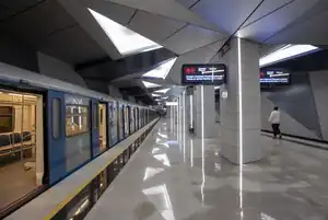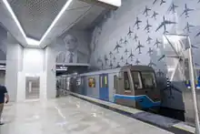 Aeroport Vnukovo (Russian: Аэропорт Внуково pronunciation) is a Moscow Metro station, the western terminus of the Kalininsko-Solntsevskaya line. The station serves the Vnukovo International Airport. It is the westernmost station on the Moscow Metro.