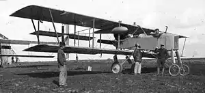 The Voisin VII was a biplane with a single engine in a pusher configuration, developed by Voisin in 1916 as an enlarged Voisin V with the engine cooling radiators moved to the nose. However, the Voisin VII was underpowered, even with improvements over its predecessor.[1]