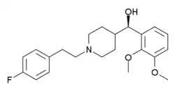 Volinanserin (INN) (developmental code name MDL-100,907) is a highly selective 5-HT2A receptor antagonist that is frequently used in scientific research to investigate the function of the 5-HT2A receptor.[1][2][3] It was also tested in clinical trials as a potential antipsychotic,[4][5] antidepressant,[6] and treatment for insomnia but was never marketed.[7]