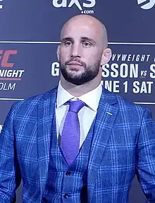 Volkan Oezdemir (born 19 September 1989) is a Swiss professional mixed martial artist and former kickboxing practitioner.[9] He currently competes in the Light heavyweight division in the Ultimate Fighting Championship (UFC). A professional competitor since 2010, Oezdemir formerly competed for Bellator. As a kickboxing practitioner, he competed for Superkombat Fighting Championship in their heavyweight division. As of 1 August 2023 he is #9 in the UFC light heavyweight rankings.[10]